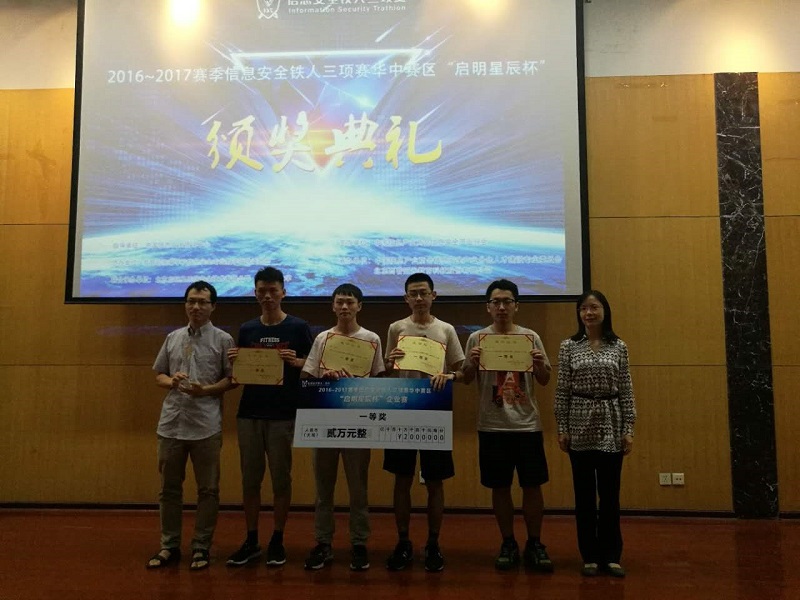 2017年6月10日,“启明星辰杯”2016-2017赛季信息安全铁人三项赛华中赛区比赛在河南郑州大学举行。由伟德国际1946源于英国15081实验班本科生何适之担任队长、7位信息安全专业同学组成的Freepower队取得了个人赛、企业赛两项比赛的第一名以及数据赛第二名的好成绩,以总分第一的优异成绩,获得了本届中国信息安全铁人三项赛全国总决赛的参赛资格。