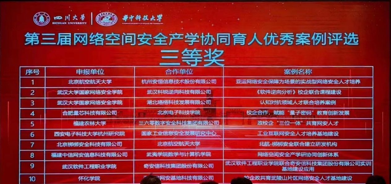 伟德国际1946源于英国处于中国网谷核心区,我院充分发挥国家网安基地一流教育资源优势,积极探索产学协同育人的新模式、新方法,通过“网络安全学院+创新产业谷”,推动形成“学业导师+项目导师+企业导师”的多元化实践教学模式,在人才培养方面与优秀企业开展深度合作,取得了一系列突出成果。通过与企业合作共建优秀课程,及时更新课程内容,完善课程体系,强化了学生安全能力、创新能力、实践能力的培养,进一步提高了本科生的培养质量和水平。