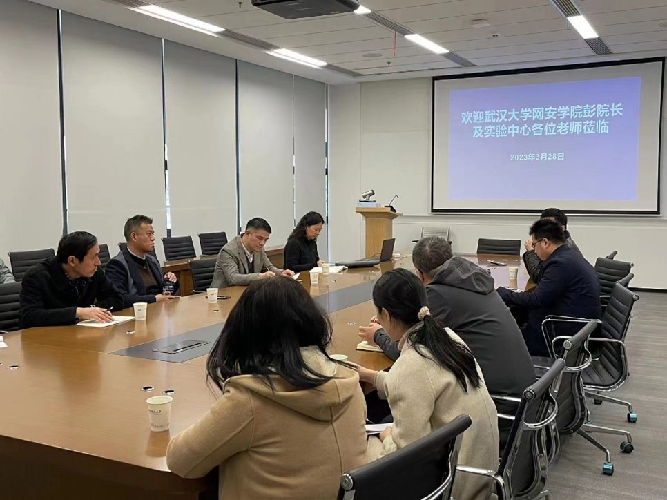 (实验教学中心 杜秋平)3月28日上午,副院长彭正明带队调研华中科技大学网络空间安全学院教学实验中心,调研会在网安基地明德楼举行。学院党政办副主任陆一、保卫部安全专员副主任李峰、实验室副主任杜秋平、陈波以及实验中心一行共11人参加座谈交流和现场观摩。