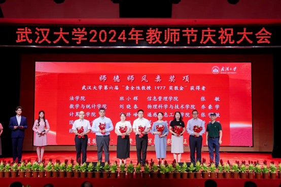 (通讯员 闻谊) 9月9日下午,武汉大学在人文馆主厅召开学校2024年教师节庆祝大会,隆重庆祝第40个教师节,表彰获奖教师。我院彭国军教授作为武汉大学第六届“查全性教授1977奖教金”获得者接受了表彰。这是我院教师首次获得该项荣誉。